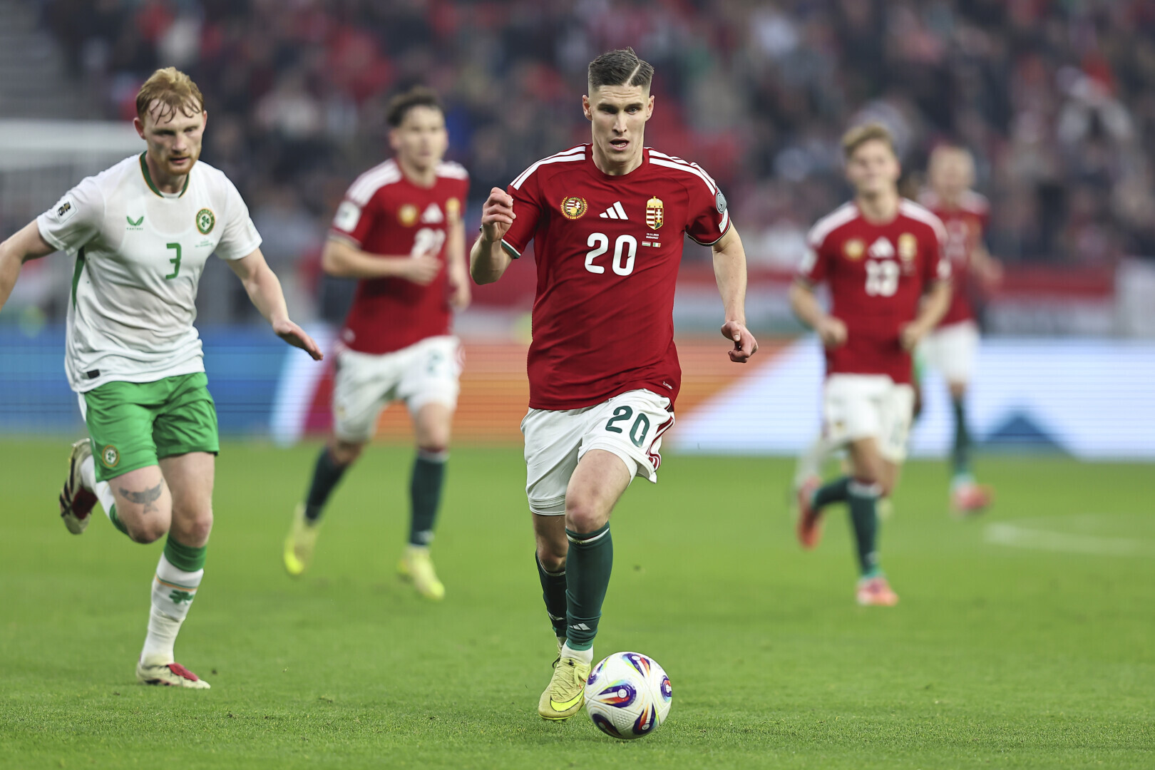 Az egyenlítés után visszavettük az irányítást, türelmesen, a labdabirtoklásra törekedve, kockázatok nélkül próbáltunk játszani, és egy-egy ritmusváltással megbontani a masszívan védekező íreket. A 27. percben Lukács remek jobb oldali beadására Sallai érkezett, de óriási helyzetben, 5 méterről, ballal Kelleher kapusba lőtte a labdát.